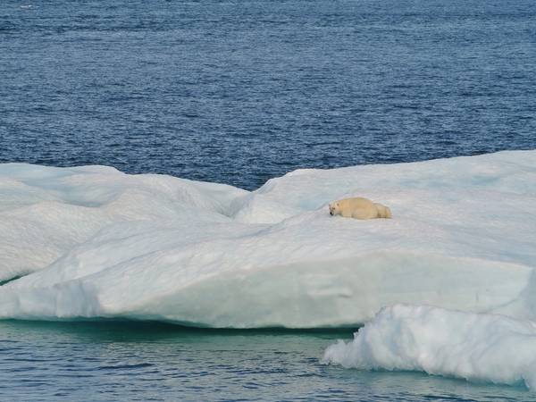 با افزایش دمای جهانی، یخ دریای شمالگان در تابستان زودتر آب میشود و آب آن در زمستان دیرتر یخ میبندد؛ هر چه دوران بدونیخ طولانیتر شود، خرس قطبی باید مدت بیشتری را روی زمین و بدون دسترسی به منبع اصلی غذایش سپری کند.