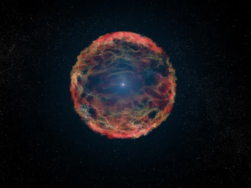 در اثر این انفجار، یک ستاره بزرگ که سوخت هستهای خود را تمام کرده، در هسته خود فرو میریزد.