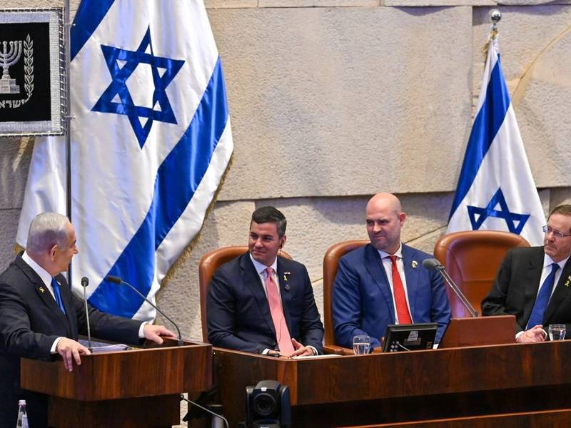 نتانیاهو در سخنرانی خود در نشست پارلمان به افتخار سانتیاگو پنیا، رییسجمهوری پاراگوئه که به اسرائیل سفر کرده است، گفت: «ما از خود دفاع خواهیم کرد، آینده خود را تضمین خواهیم کرد و برای برقراری روابط مسالمتآمیز با هر کسی که میخواهد در صلح با ما زندگی کند، تلاش خواهیم کرد.»