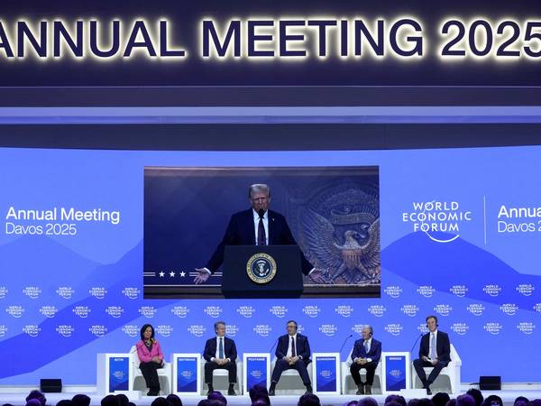 دونالد ترامپ، رییسجمهوری ایالات متحده آمریکا، در سخنرانی خود در مجمع جهانی اقتصاد، از کشورهای حاشیه خلیج فارس خواست برای کمک به خاتمه مناقشه اوکراین و روسیه، در جهت کاهش قیمت جهانی نفت همکاری کنند. او همچنین از عربستان خواست یک تریلیون دلار در آمریکا سرمایهگذاری کند.