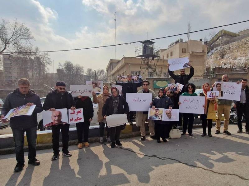 گروهی از فعالان مدنی و خانوادههای زندانیان سیاسی محکوم به اعدام، در مقابل زندان اوین دست به تجمع اعتراضی زدند. حاضران در این تجمع با در دست داشتن پلاکاردها و پارچهنوشتههایی، خواستار لغو احکام اعدام زندانیان سیاسی و زندانیان جرایم عمومی شدند.