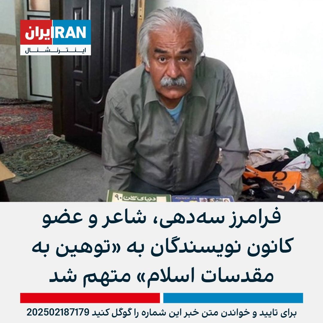 فرامرز سهدهی، شاعر و عضو کانون نویسندگان ایران، پس از تفهیم اتهام در دادسرای عمومی و انقلاب شهرستان بهبهان، با تودیع قرار وثیقه ۸۰۰ میلیون تومانی، موقتا آزاد شد. بر اساس گزارش کانون نویسندگان، این شاعر به «تبلیغ علیه نظام و توهین به علی خامنهای و مقدسات اسلام» متهم شده است.