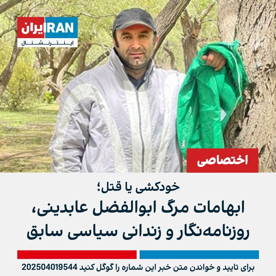 بر اساس اطلاعات اختصاصی رسیده به ایران اینترنشنال، شواهد یافت شده از گزارش پزشکی قانونی اهواز و مشاهدات صحنه مرگ، نشان میدهد ابوالفضل عابدینی، روزنامهنگار، زندانی سیاسی سابق و عضو حزب پان ایرانیست، بر خلاف اعلام رسانههای رسمی، ممکن است به قتل رسیده باشد.