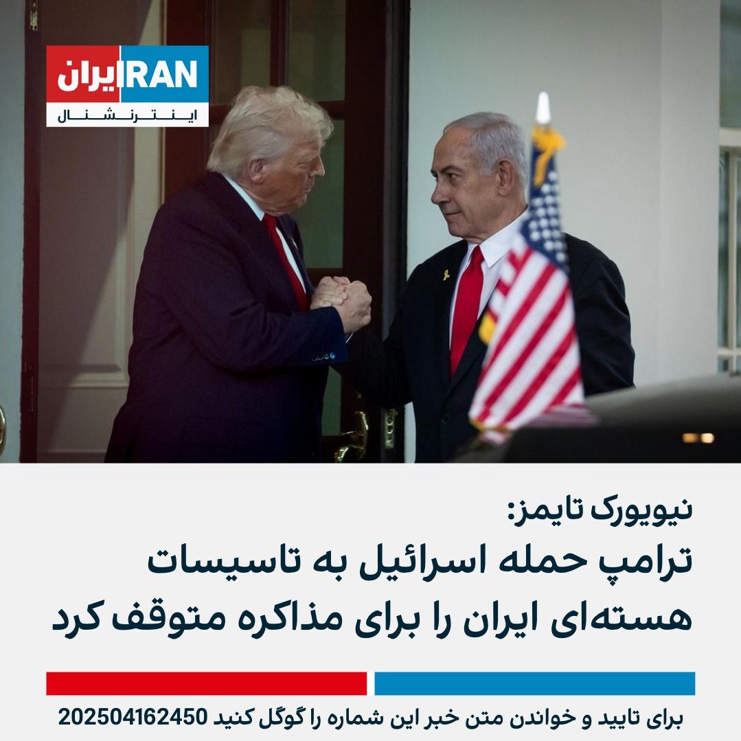 بنا به گزارش نیویورکتایمز، اوایل ماه جاری، ترامپ تصمیم خود مبنی بر عدم حمایت از حمله اسرائیل به ایران را به تلآویو اطلاع داد و این موضوع را در دیدار هفته گذشتهاش با بنیامین نتانیاهو در کاخ سفید نیز مطرح و اعلام کرد که ایالات متحده مذاکرات خود با ایران را آغاز کرده است.