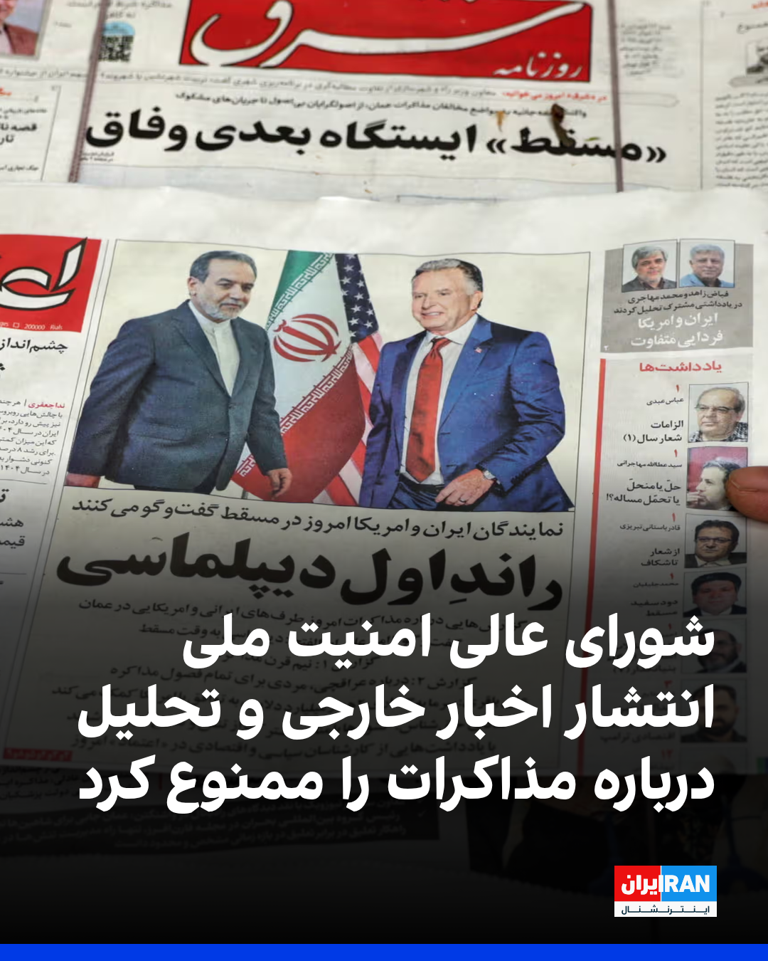 بر اساس اطلاعات رسیده به ایراناینترنشنال، شورای عالی امنیت ملی جمهوری اسلامی با صدور ابلاغیهای به رسانههای کشور، انتشار اخبار از منابع خارجی و تحلیلها درباره روند مذاکرات را ممنوع اعلام کرد.
