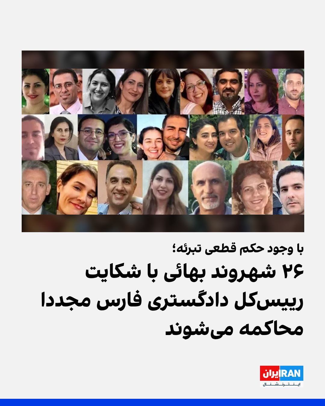 بر اساس اطلاعات رسیده به ایراناینترنشنال، ۲۶ شهروند بهائی در شیراز بابت پروندهای که حدود یک دهه پیش علیه آنها گشوده شده بود و در آن رای برائت گرفتند، با اعتراض و شکایت رییسکل سابق دادگستری استان فارس و پذیرش آن از سوی دیوان عالی کشور، قرار است بار دیگر ۱۰ تیرماه محاکمه شوند.