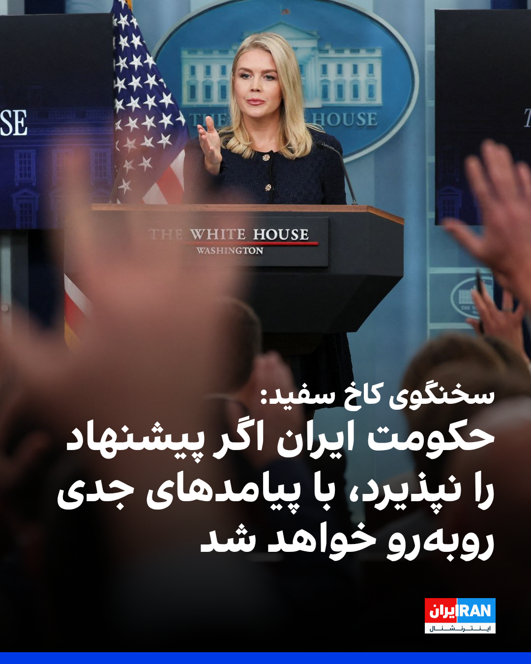کارولین لویت، سخنگوی کاخ سفید، از ارائه پیشنهادی «دقیق و قابل قبول» به جمهوری اسلامی خبر داد و هشدار داد که در صورت رد آن از سوی تهران، حکومت ایران با پیامدهای جدی روبهرو خواهد شد.