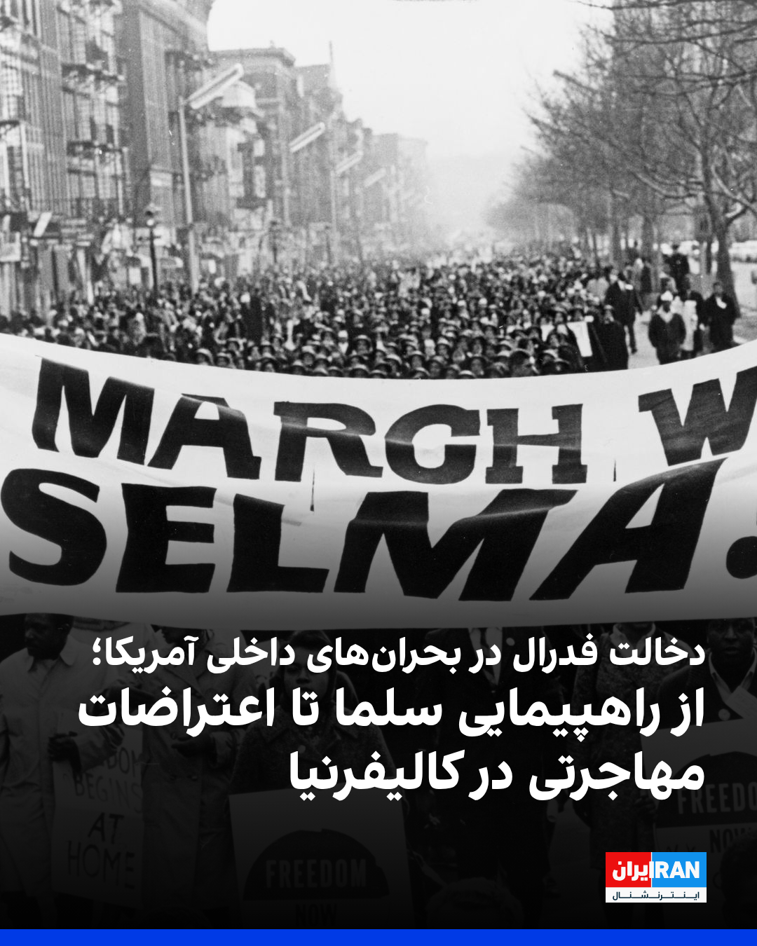 شبکه انپیآر آمریکا در مقالهای به مرور رویاروییهای روسای جمهوری ایالات متحده با فرمانداران ایالتها پرداخته و نوشته است این نخستین بار در ۶۰ سال گذشته است که رییسجمهوری آمریکا بدون موافقت فرماندار، گارد ملی ایالتی را تحت فرماندهی فدرال درمیآورد. پیشتر در سال ۱۹۶۵، لیندون بی. جانسون، رییسجمهوری وقت آمریکا، در اقدامی مشابه، گارد ملی آلاباما را برای حمایت از فعالان حقوق مدنی که از شهر سلما به مونتگمری راهپیمایی میکردند، اعزام کرد؛ اقدامی تاریخی که در پی امتناع فرماندار ایالت از تضمین امنیت راهپیمایان انجام شد.