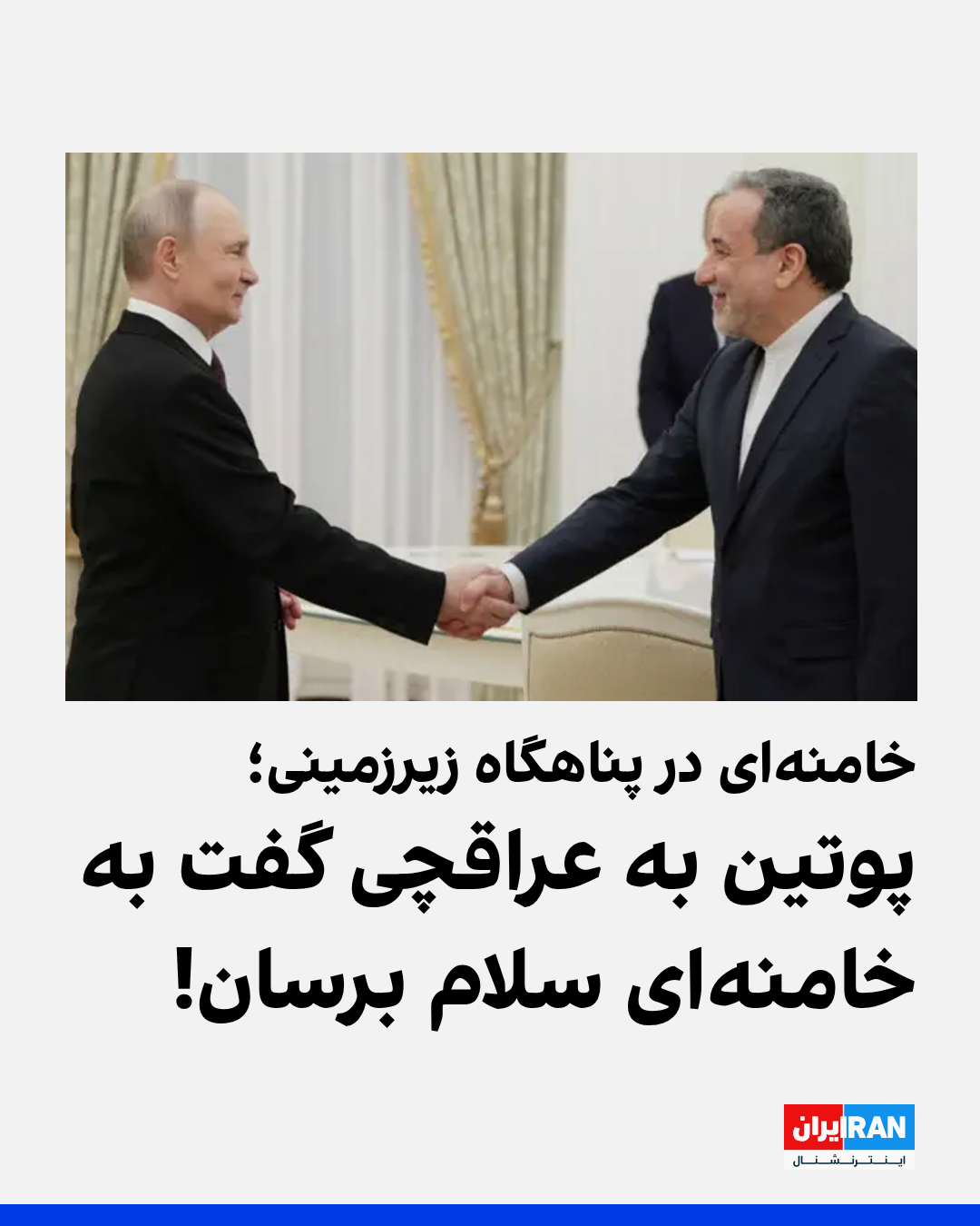عباس عراقچی، وزیر خارجه جمهوری اسلامی، در دیدار با رییسجمهور روسیه گفت مسکو در سمت درست تاریخ قرار دارد. در این دیدار پوتین به عراقچی گفت: «لطفا سلام و بهترین آرزوهای مرا به رئیسجمهور و رهبر معظم ایران برسانید.»