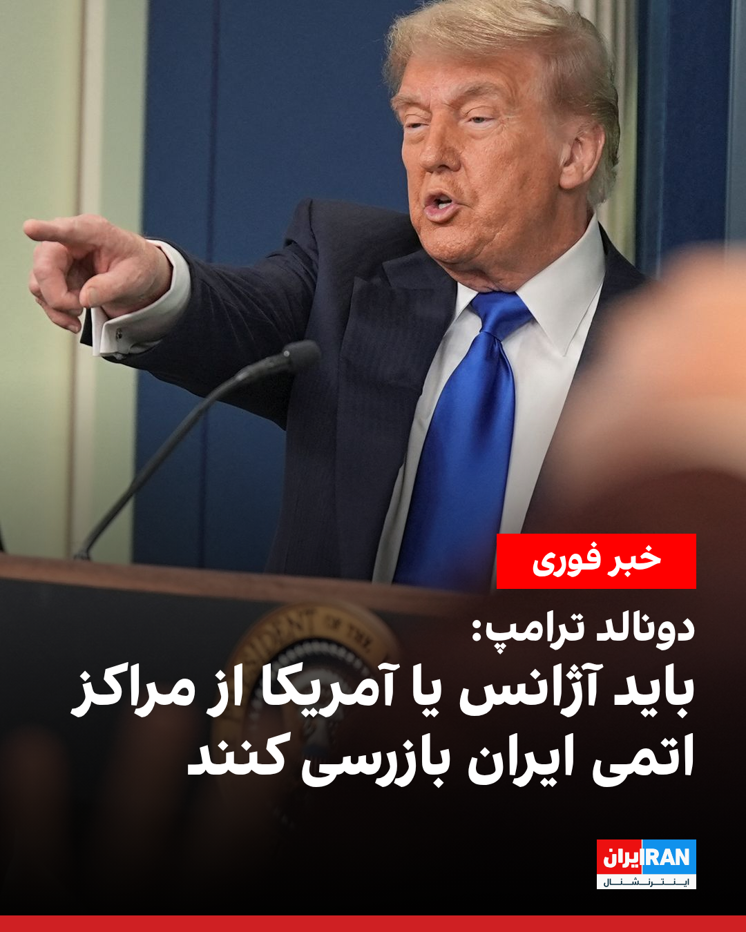 ترامپ همچنین خواستار بازرسی آژانس بینالمللی انرژی اتمی از ایران شد. او گفت این بازدید میتواند از سوی یک نهاد یا فرد مورد وثوق آمریکا از جمله خود ایالات متحده انجام شود.
