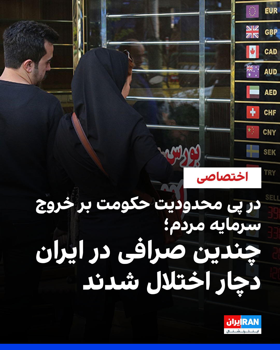 منابع مطلع، دوشنبه ۹ تیر به ایراناینترنشنال گفتند اختلال در صرافیها در پی تلاشهای حکومت برای محدود کردن توانایی مردم در خارج کردن سرمایههایشان رخ داده است.