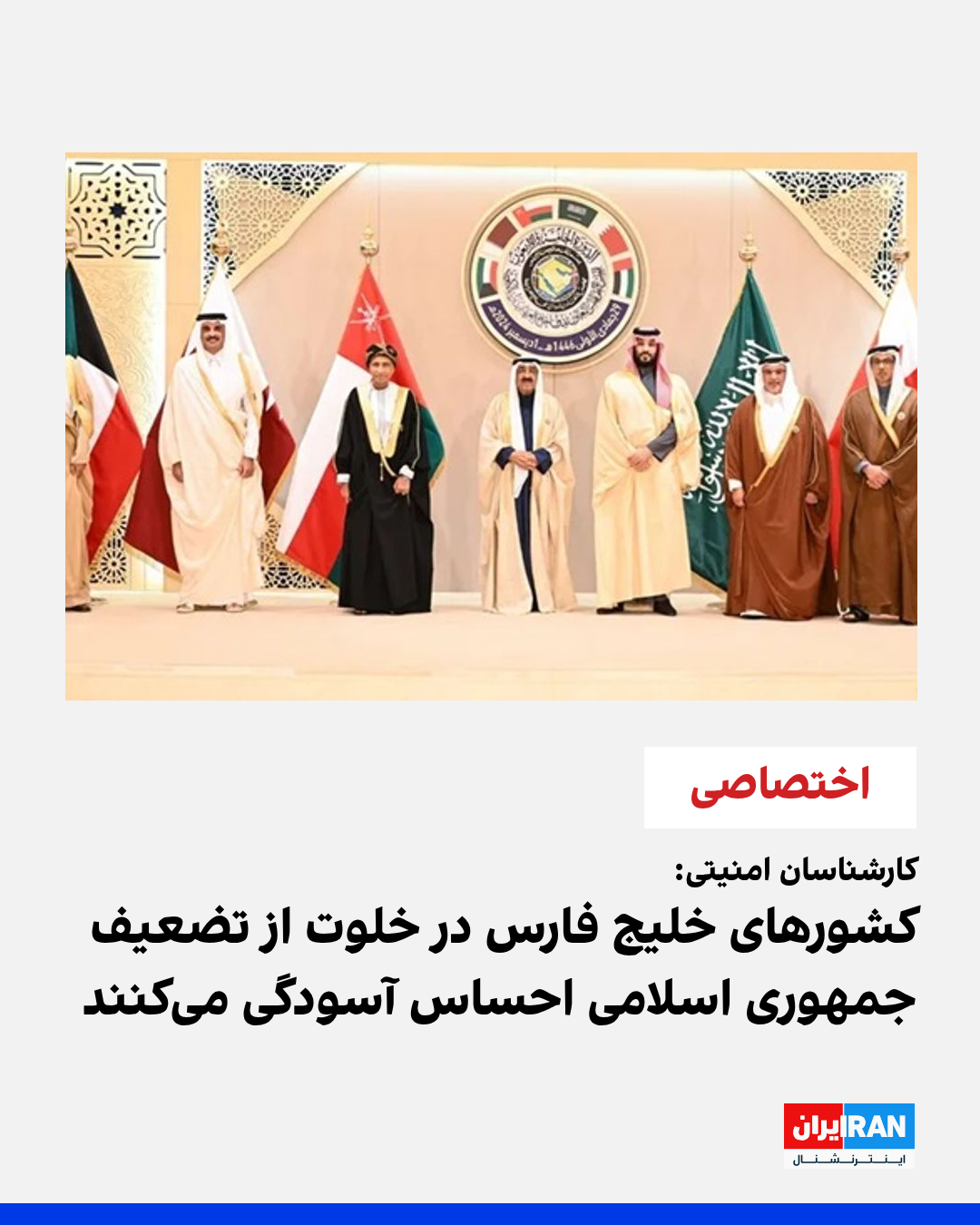 کارشناسان امنیتی به ایراناینترنشنال گفتهاند که کشورهای حاشیه خلیج فارس در خلوت از اینکه جنگ ۱۲روزه با اسرائیل موجب تضعیف جمهوری اسلامی شده، احساس آسودگی میکنند.