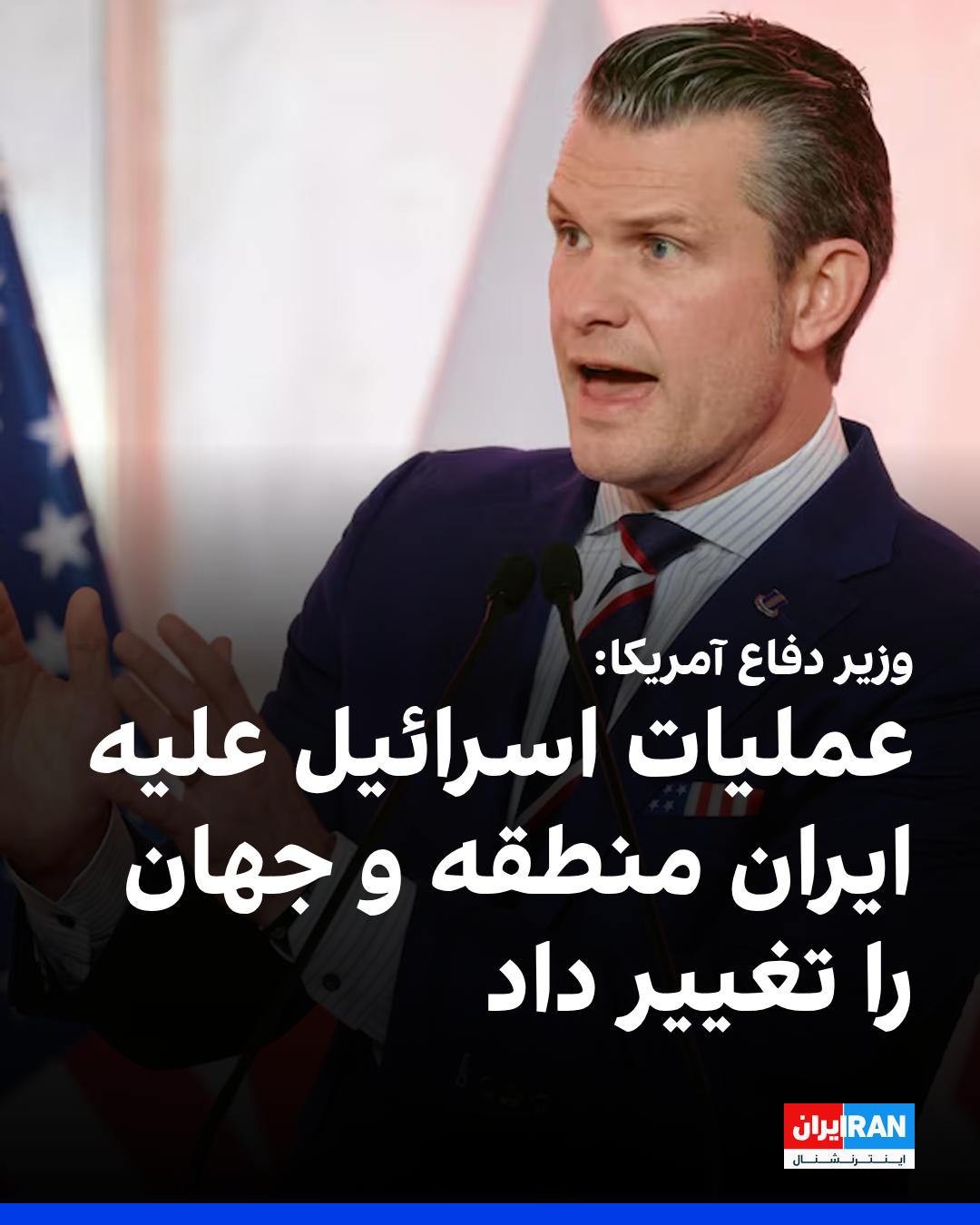 هگست تاکید کرد: «حمله به تاسیسات ایران پیامی به جهان بود که ایالات متحده میتواند مخفیانه ۳۷ ساعت پرواز کند و داخل یک کشور متخاصم شود، مهمات قوی و دقیقی را که فقط آمریکا دارد شلیک کند و در امنیت کامل بازگردد.»