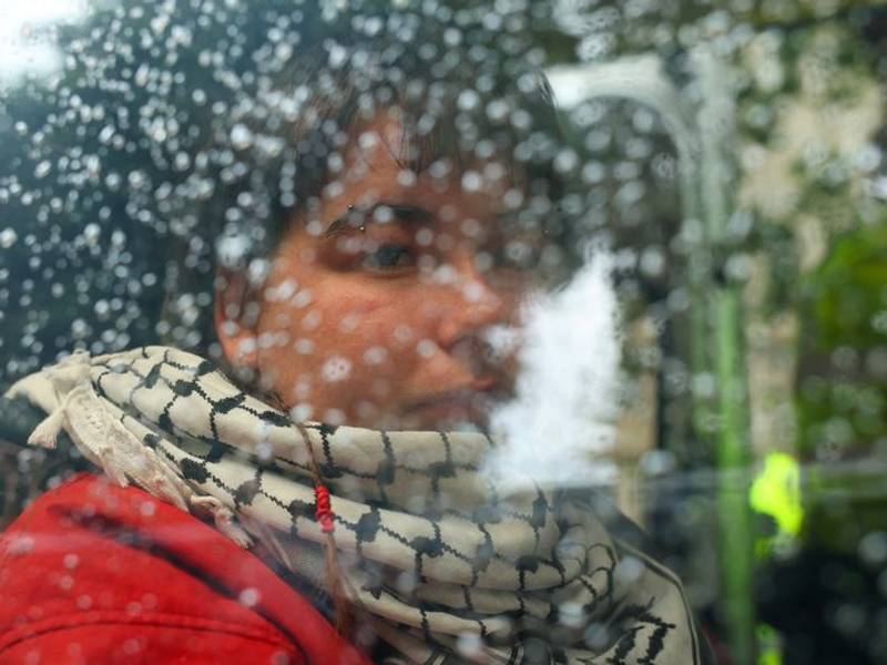 برخی از شرکتکنندگان در این تجمع که شالهای سیاه و سفید فلسطینی به سر داشتند، با خودروهای پلیس از محل تخلیه شدند.