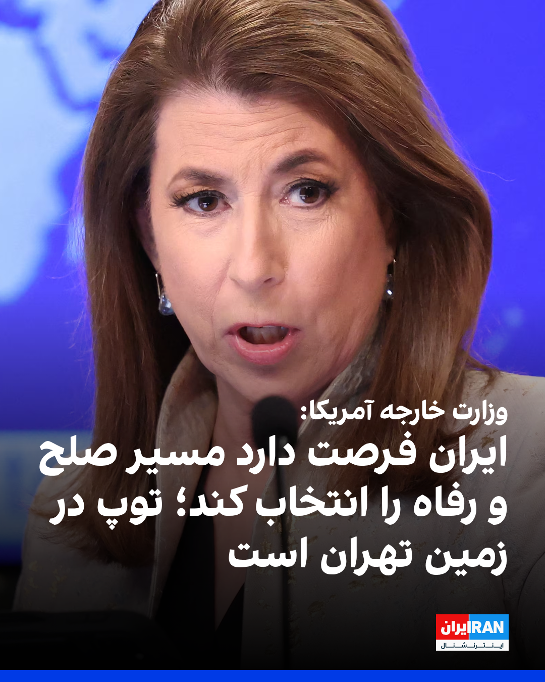 تامی بروس، سخنگوی وزارت امور خارجه آمریکا، با اشاره به احتمال از سرگیری مذاکرات میان آمریکا و جمهوری اسلامی گفت که «توپ در زمین ایران است». او افزود که جمهوری اسلامی همچنان فرصت دارد تا با انتخاب «مسیر صلح و رفاه»، منافع مردم ایران را تامین کند.
