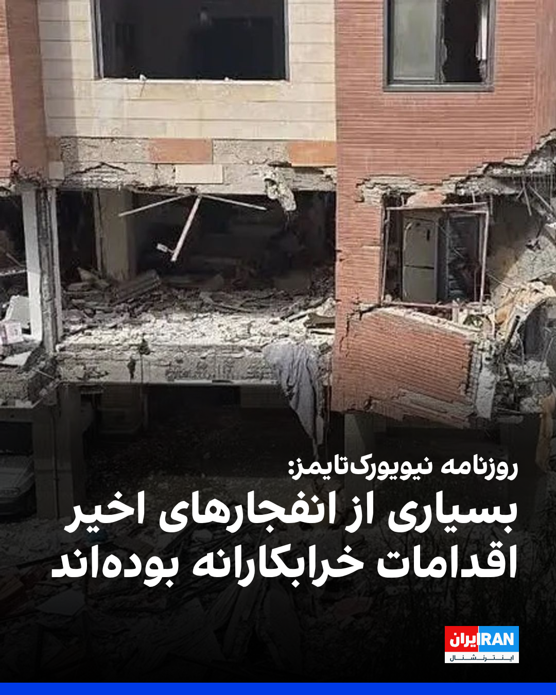 روزنامه نیویورکتایمز به نقل از سه مقام جمهوری اسلامی که نامشان ذکر نشده، گزارش داد بسیاری از انفجارهای منتسب به نشت گاز و آتشسوزیهای روزهای گذشته «اقدام خرابکارانه» و احتمالا کار اسرائیل بودهاند.