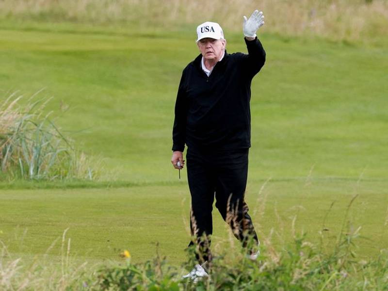 رییسجمهوری آمریکا هنگام ورود به خبرنگاران گفت قصد دارد از دو زمین گلف خود در اسکاتلند دیدن کند؛ یکی در ترنبری در سواحل غربی که شنبه ۴ مرداد در آن بازی کرد و دیگری در نزدیکی ابردین.