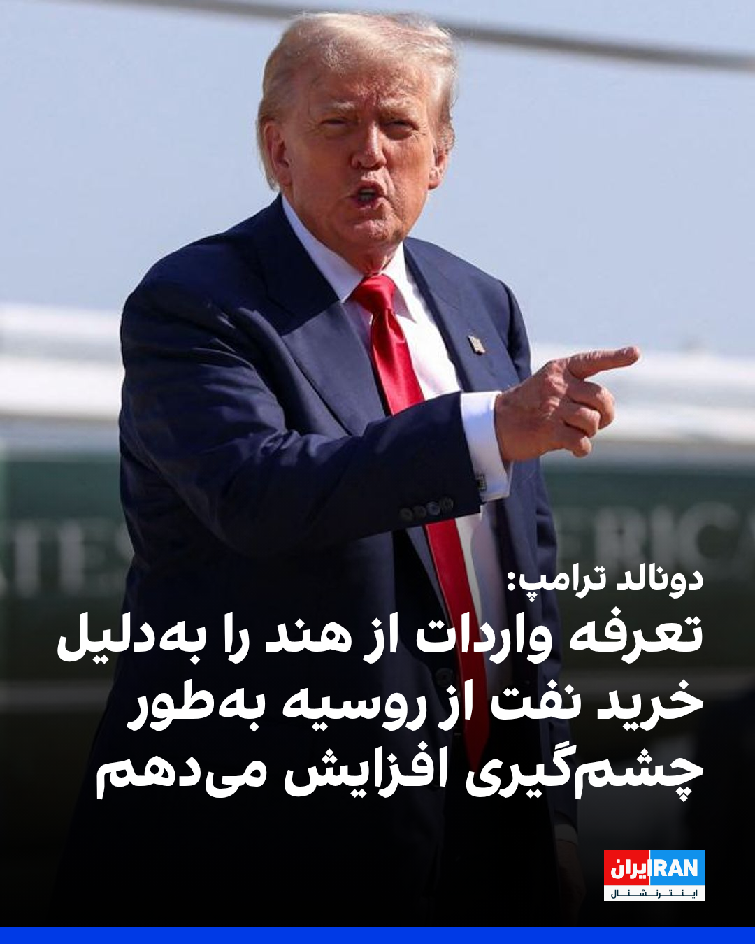 دونالد ترامپ، دوشنبه ۱۳ مرداد در شبکه اجتماعی تروثسوشال نوشت: «هند نهتنها مقدار زیادی از نفت روسیه را میخرد، بلکه بخش عمدهای از آن را در بازار آزاد با سود هنگفت به فروش میرساند.»
