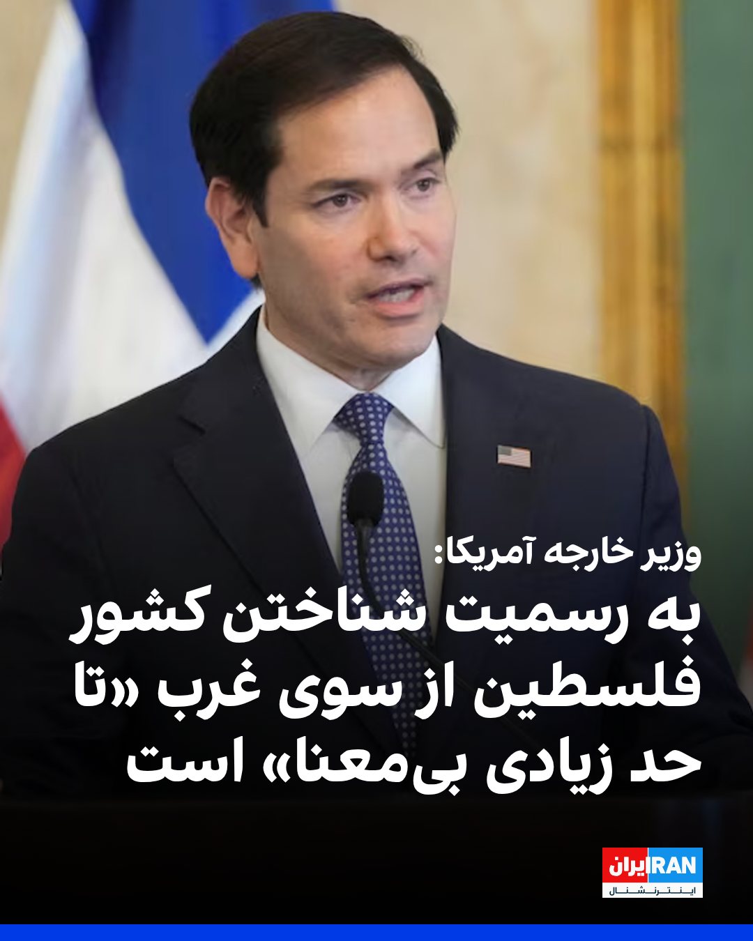 به گزارش وزارت خارجه آمریکا، مارکو روبیو در برنامه رادیویی «سید و دوستان در صبح»، اقدام برخی کشورهای غربی برای شناسایی کشور فلسطین در ماه آینده را «تا حد زیادی بیمعنا» و ناشی از ملاحظات سیاست داخلی آنها دانست.