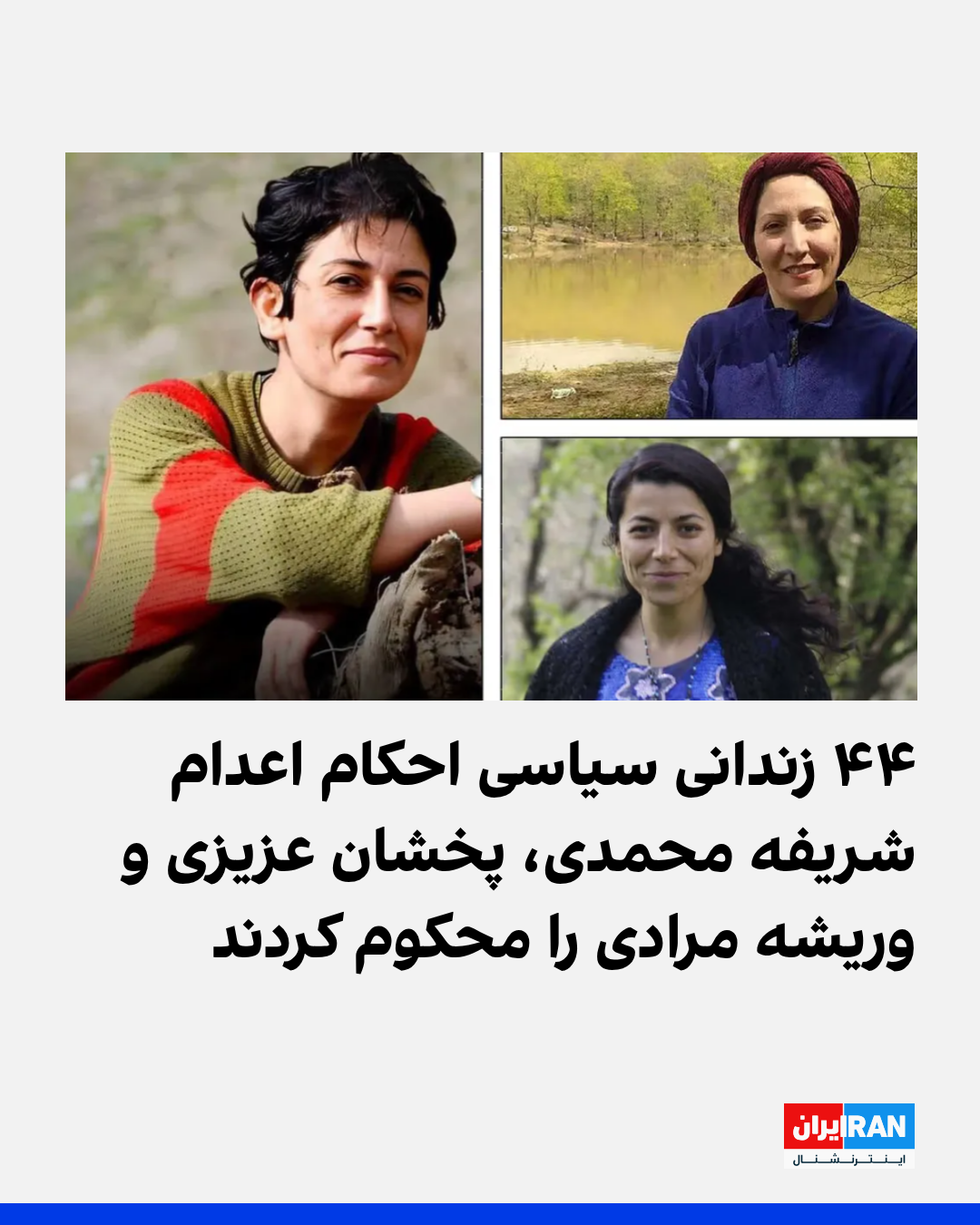 ۴۴ زندانی سیاسی با صدور بیانیهای، احکام اعدام شریفه محمدی، پخشان عزیزی و وریشه مرادی، سه زن زندانی سیاسی محبوس در زندانهای قرچک ورامین و لاکان رشت را محکوم کردند و از نهادهای حقوق بشری خواستند فورا به این احکام واکنش نشان دهند.
