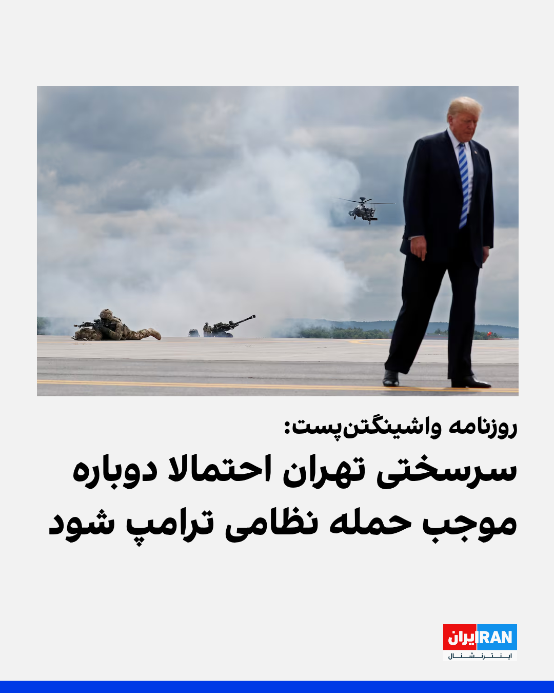 روزنامه واشینگتنپست در سرمقالهای نوشت با توجه به ادامه فعالیتهای بیثباتکننده جمهوری اسلامی، بهویژه سرسختی تهران در ارتباط با برنامه هستهای، این احتمال میرود که دولت دونالد ترامپ بار دیگر گزینه حمله نظامی را برای مهار تهدیدات حکومت ایران در دستور کار قرار دهد.