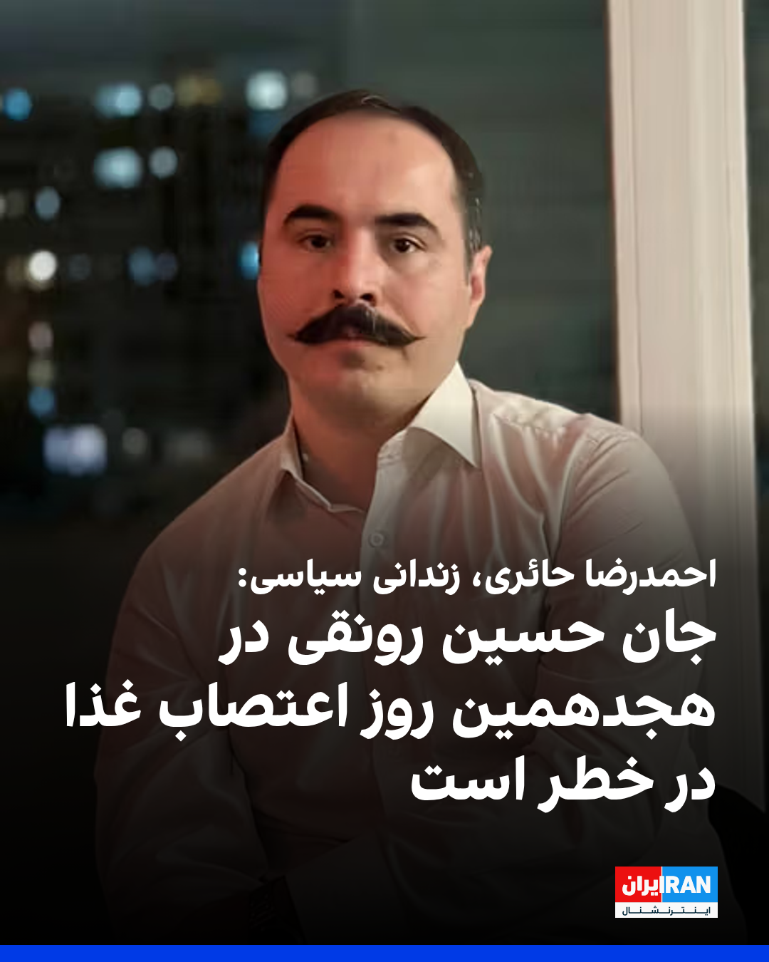 احمدرضا حائری، زندانی سیاسی، در پیامی از زندان قزلحصار نوشت اعتصاب غذای حسین رونقی وارد هجدهمین روز شده و جان او در خطر جدی قرار دارد.