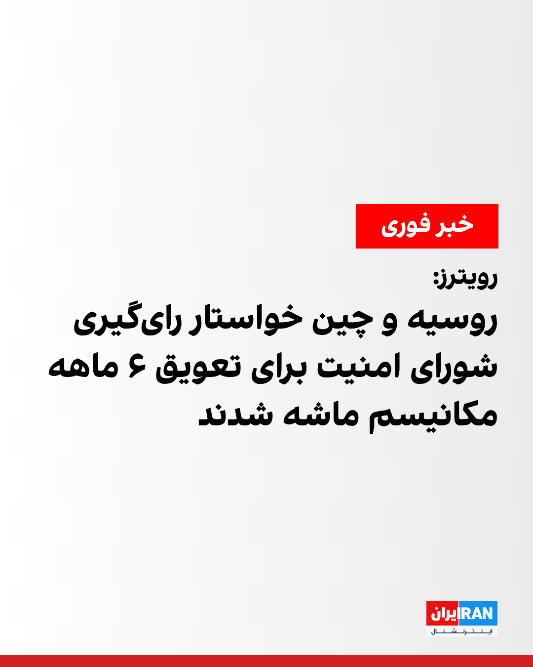 خبرگزاری رویترز به نقل از دیپلماتها خبر داد که روسیه و چین از شورای امنیت سازمان ملل خواستهاند روز جمعه درباره پیشنویس قطعنامهای برای به تعویق انداختن ششماهه اعمال مکانیسم ماشه علیه ایران رایگیری شود.