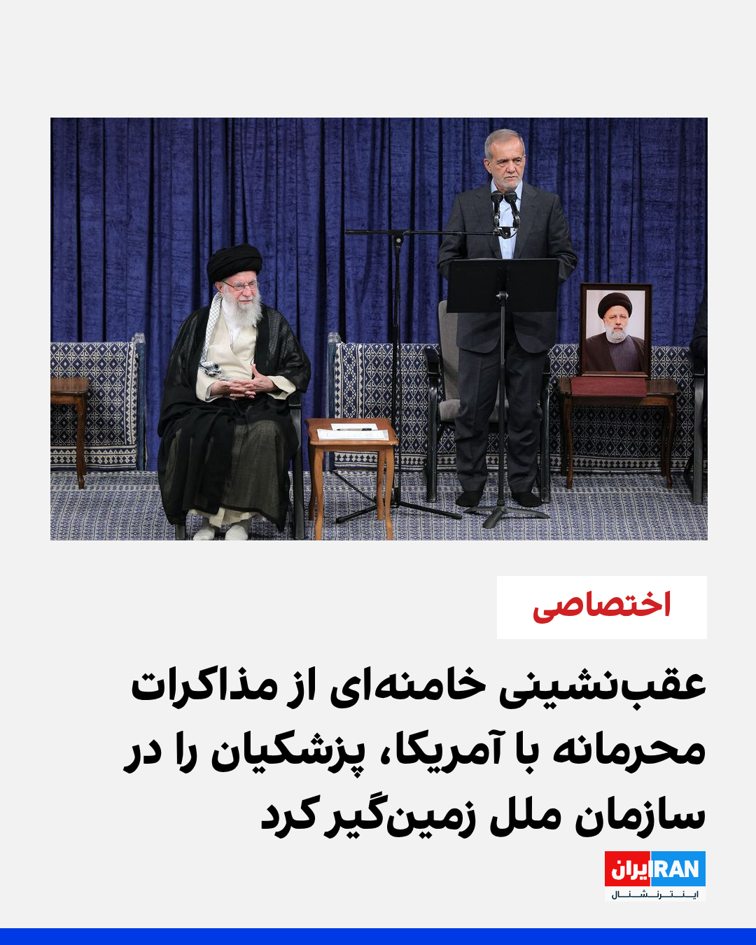 بهگفته دو عضو هیئت همراه پزشکیان، خامنهای در جلسهای خصوصی به رییسجمهوری گفته بود اگر گفتوگوی مستقیم با آمریکاییها بتواند جلو بازگشت تحریمها را بگیرد، وزیر امور خارجه میتواند وارد مذاکرات مستقیم محرمانه با آنان شود اما درست زمانی که هواپیمای هیئت ایرانی بر فراز اقیانوس اطلس بود، خامنهای در سخنرانی تند و آتشین خود از صداوسیمای جمهوری اسلامی، هرگونه مذاکره با آمریکا را بهطور قطعی رد کرد. چرخشی ناگهانی که به گفته دو منبع مطلع، پزشکیان و وزیر امور خارجهاش را در بهت فرو برد.