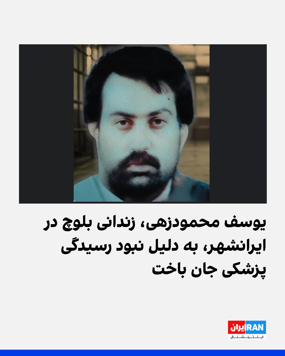 به گزارش رسانههای حقوق بشری، یک زندانی بلوچ محبوس در زندان مرکزی ایرانشهر به نام یوسف محمودزهی، در نتیجه بیماری کلیوی و نبود رسیدگی پزشکی مناسب و انتقال نیافتن بهموقع به مراکز درمانی، جان خود را از دست داد.