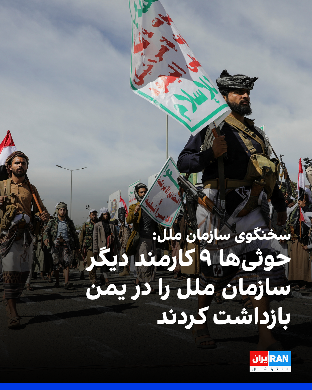 سخنگوی سازمان ملل اعلام کرد ۹ کارمند دیگر این سازمان در یمن به دست حوثیها که گروه مورد حمایت جمهوری اسلامی است بازداشت شدهاند تا شمار کارکنان بازداشتی سازمان ملل در مناطق تحت کنترل این گروه از سال ۲۰۲۱ به ۵۳ نفر برسد.