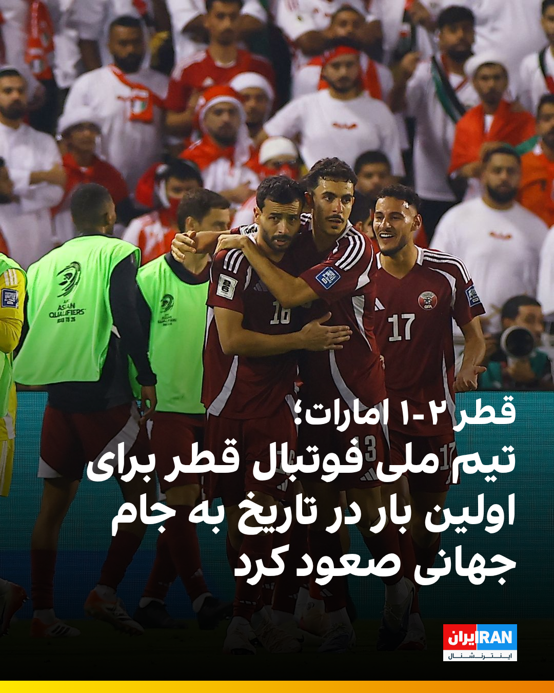 تیم ملی فوتبال قطر در دومین بازی خود در مرحله پلیآف صعود به جام جهانی ۲۰۲۶، امارات را دو بر یک شکست داد. به این ترتیب عنابیها که میزبان جام جهانی ۲۰۲۲ بودند، برای اولین بار در تاریخ با صعود از مرحله انتخابی، راهی جام جهانی میشوند.