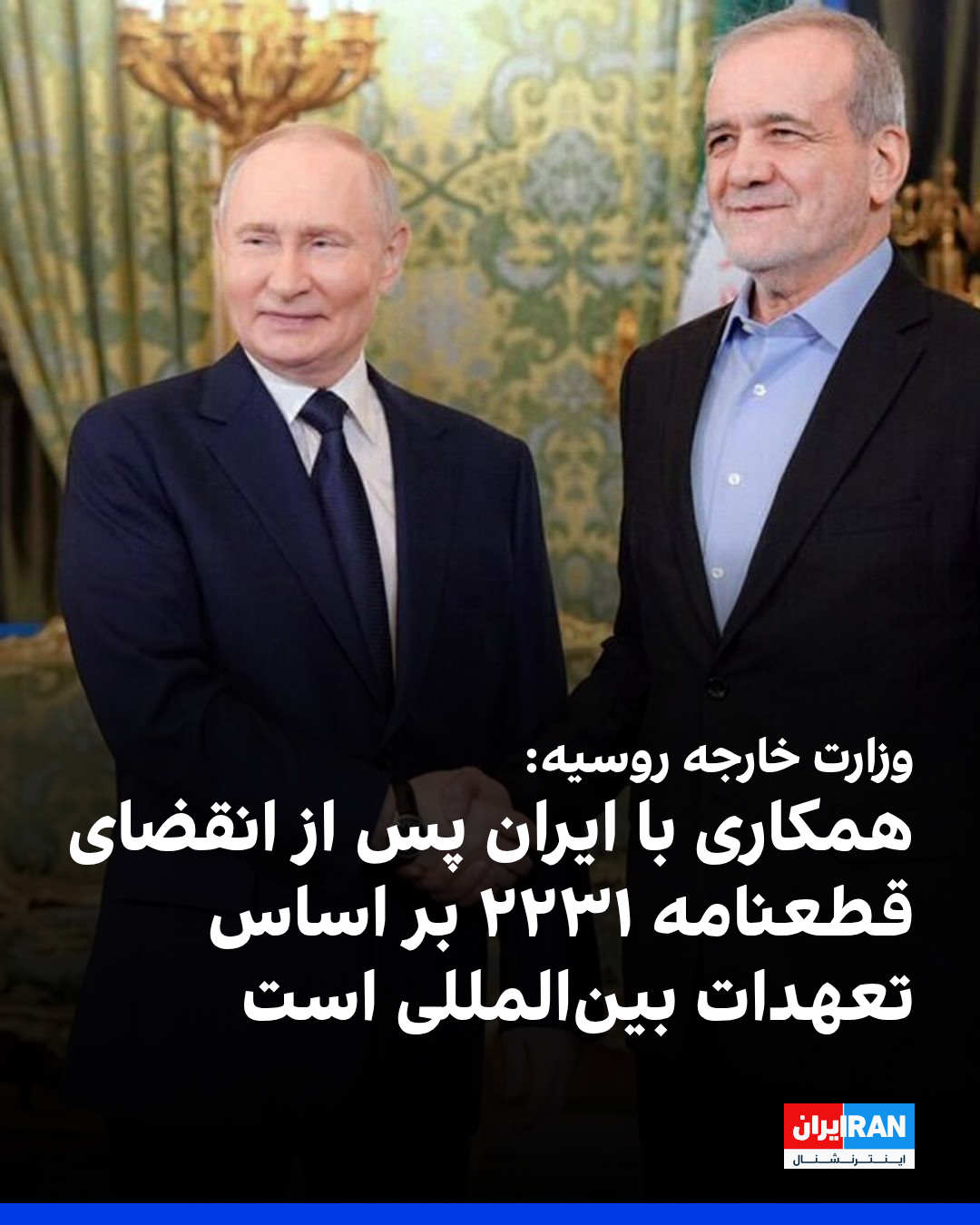 وزارت خارجه روسیه اعلام کرد که همکاری با جمهوری اسلامی پس از انقضای قطعنامه ۲۲۳۱ شورای امنیت سازمان ملل، بر اساس قوانین روسیه و تعهدات بینالمللی خواهد بود.