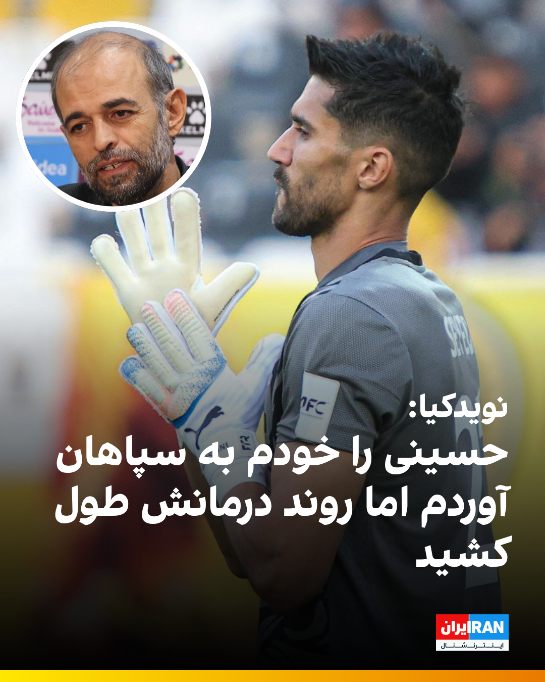 نویدکیا دراینباره توضیح داد: «من خودم حسین حسینی را به سپاهان آوردم چون اخباری اول فصل آسیبدیدگی داشت و حس کردم شاید این مسئله به تیم آسیب برساند. قبل از بازی پرسپولیس در هفته دوم یک آسیبدیدگی برای حسینی پیش آمد اما با همان آسیب بازی کرد و بعد به تیم ملی دعوت شد و به خاطر همان آسیب بازی نکرد و کمی طول کشید تا روند درمانش کامل شود. اخباری در همین زمان بهخوبی بازی کرد و کلینشیتهای متوالی داشت.»