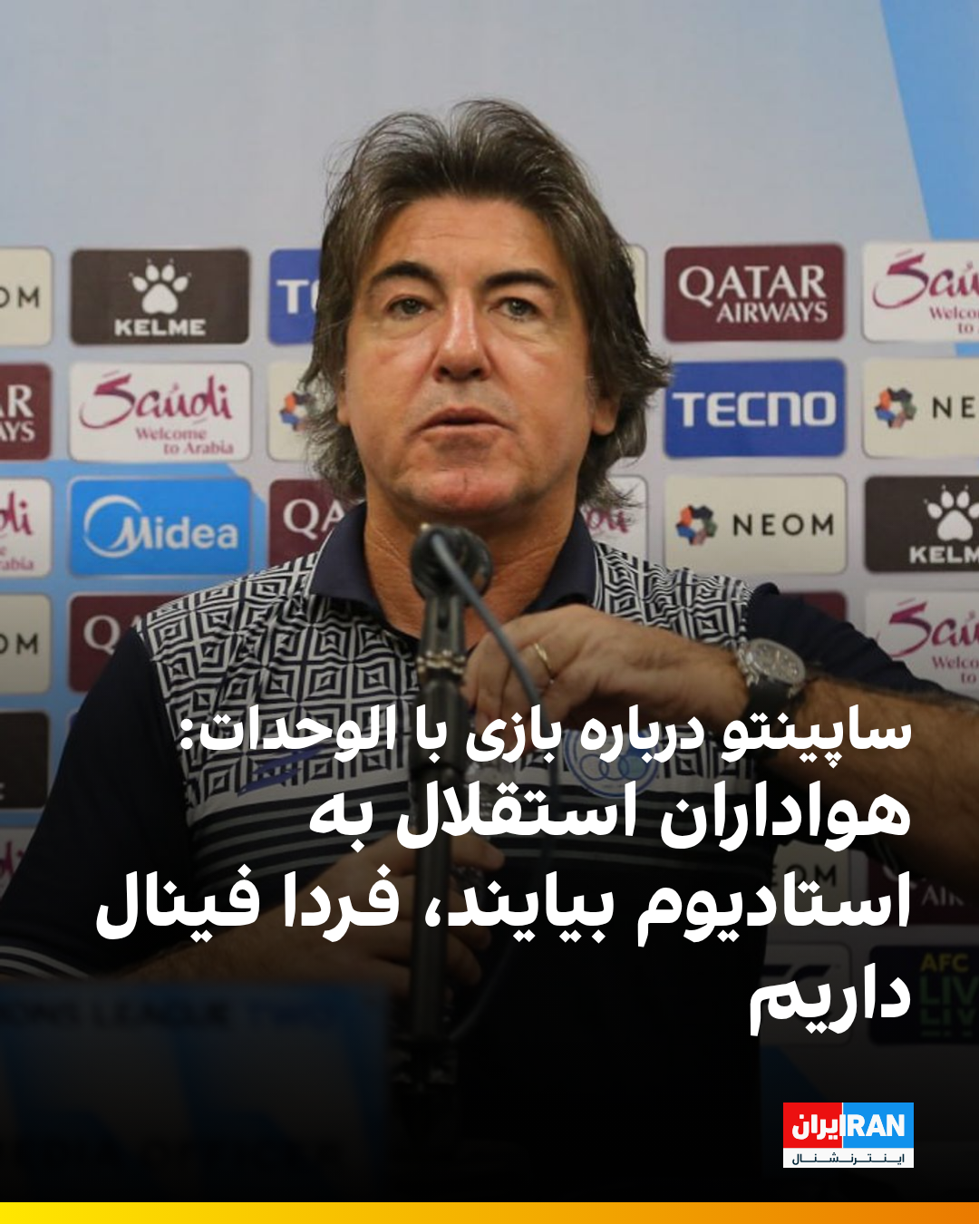 ریکاردو ساپینتو، سرمربی تیم فوتبال استقلال، در نشست خبری پیش از بازی با الوحدات اردن، با تاکید بر اهمیت پیروزی در این مسابقه برای صعود به دور حذفی، از هواداران این تیم خواست استقلال را در بازی فردا تا آخرین دقیقه حمایت کنند.
