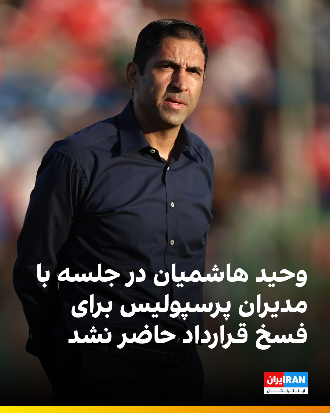 ایسنا خبر داده وحید هاشمیان، سرمربی پرسپولیس که قرار بود امروز با مدیران این باشگاه بر سر فسخ قرارداد جلسهای برگزار کند، در این جلسه حاضر نشده و اعلام کرد که فردا (دوشنبه) پای میز مذاکره بر سر فسخ قراردادش مینشیند.