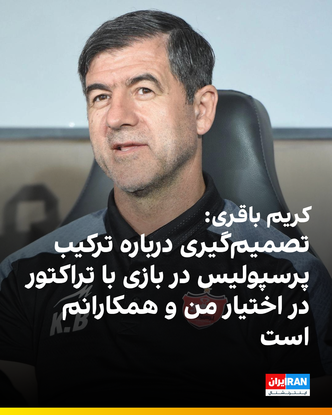 کریم باقری، مربی پرسپولیس در نشست خبری پیش از بازی با تراکتور گفت: «اوسمار بعد از بازی با تراکتور در خدمت تیم خواهد بود و تصمیمگیری درباره بازی فردا، در اختیار من و بقیه همکاران است. ترکیب تیم را بر مبنای تمرینات اخیر و بازیکنانی که در اختیار داریم، انتخاب میکنیم.»