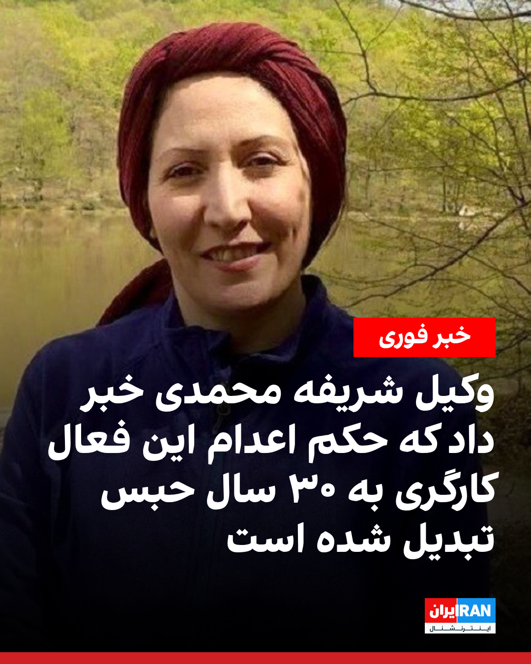 امیر رییسیان، وکیل شریفه محمدی، در اینستاگرام خبر داد که با تصمیم رییس قوه قضاییه، حکم اعدام این فعال کارگری با یک درجه تخفیف به حبس درجه یک (سی سال) تبدیل شد.