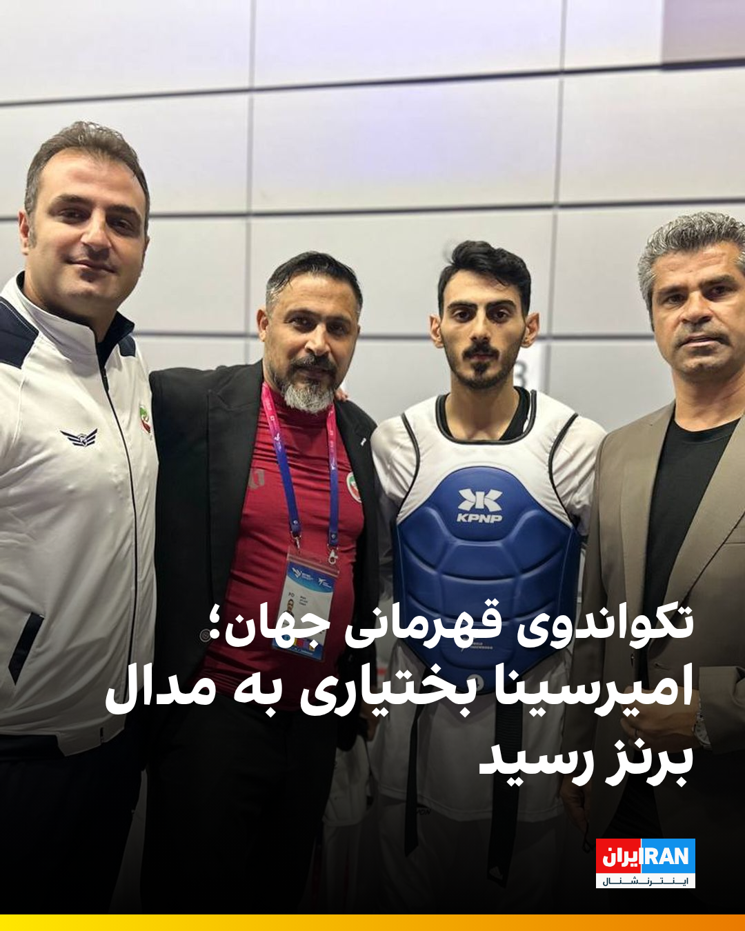 امیرسینا بختیاری، تکواندوکار ایران در وزن ۷۴- کیلوگرم در مرحله نیمهنهایی مسابقات تکواندو قهرمانی جهان برابر پونتز از برزیل با نتیجه ۲-۰ شکست خورد و به مدال برنز این رقابتها بسنده کرد.