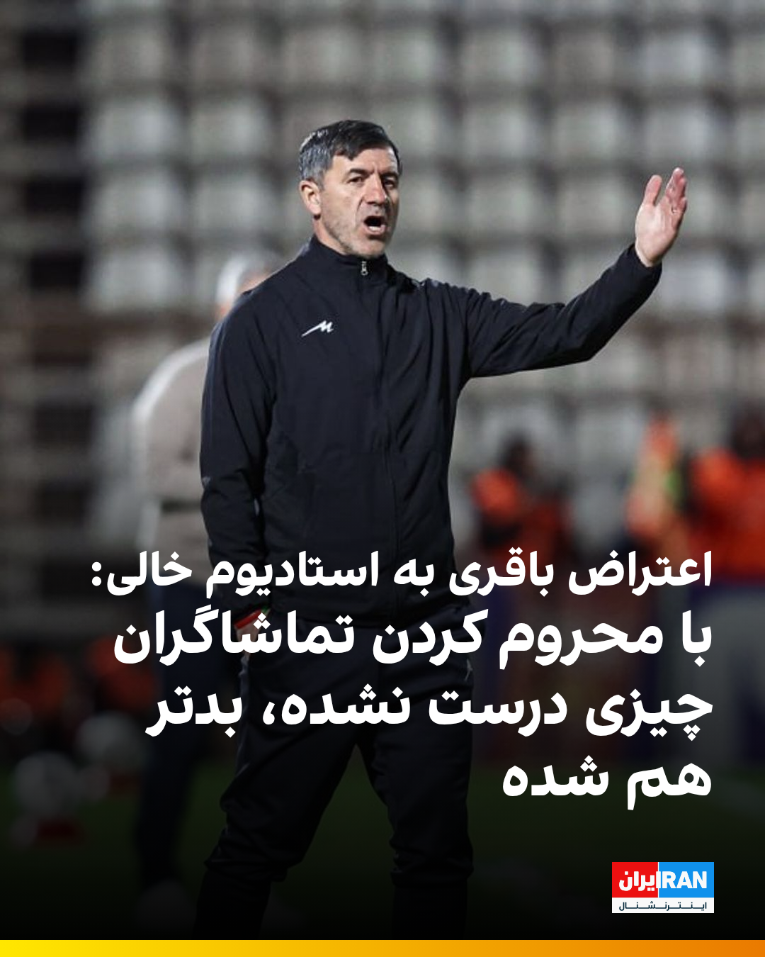 باقری دراینباره توضیح داد: «در این چند ساله نه فقط در تبریز، بلکه در کل ایران تماشاگران را محروم کردند، ولی هیچ اتفاقی نیفتاده است. نه تنها درست نشده، بلکه بدتر شده است. فکر میکنم زیبایی فوتبال نه در ایران، بلکه کل دنیا به تماشاگران است. آن انرژی که به تیمشان میدهند فوتبال ما را زیبا میکند. متأسفانه در این بازی تماشاگر نبود، ولی من دوست داشتم باشند.»