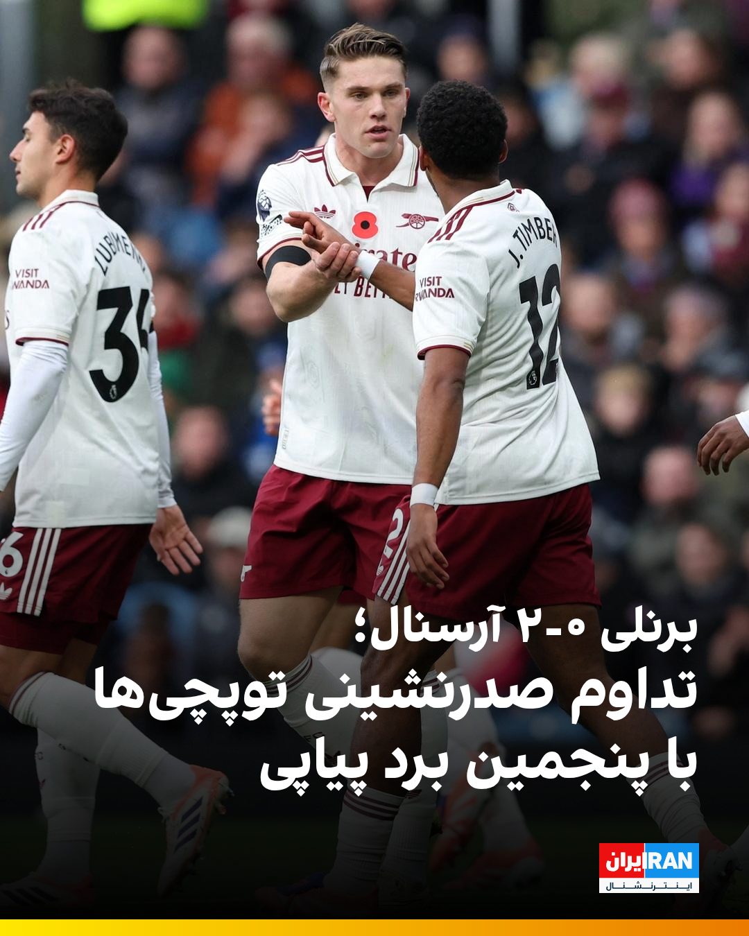 تیم فوتبال آرسنال در هفته دهم رقابتهای لیگ برتر انگلستان با دو گل برابر برنلی به پیروزی رسید و جایگاه خود در صدر جدول را با ۲۵ امتیاز تثبیت کرد. یوکرش و رایس گلهای شاگردان آرتتا را وارد دروازه میزبان کردند.