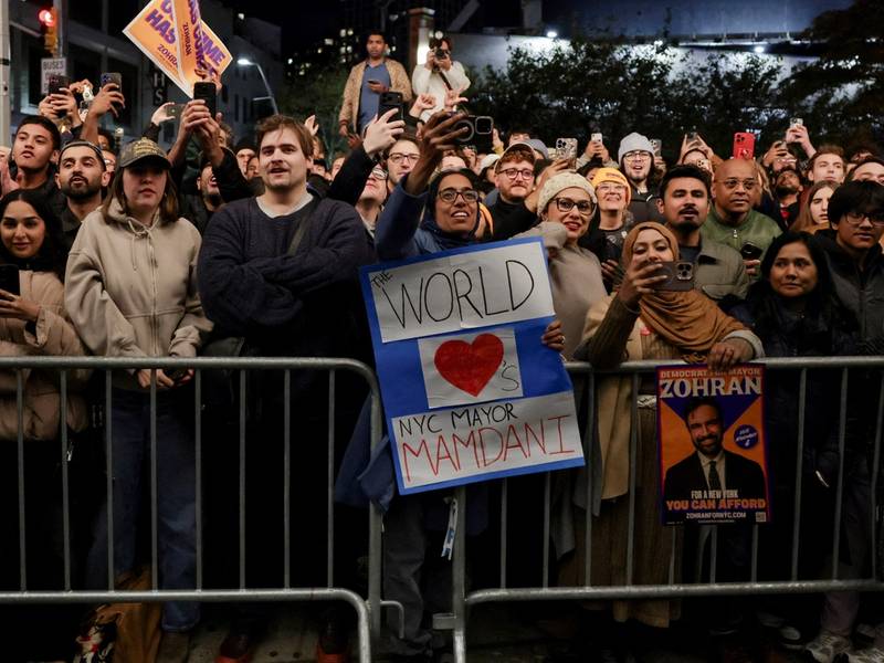 الکساندرا اوکاسیو-کورتز، نماینده برجسته دموکرات از نیویورک که در جشن پیروزی ممدانی حضور داشت، گفت: «او روشنایی است که مسیر آینده را برای حمایت از خانوادههای کارگر در نیویورک نشان میدهد.»