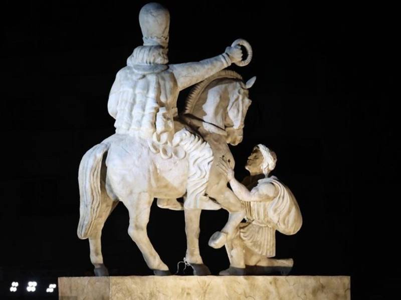 نمونه آشکار این تغییر سیاست، نصب مجسمه شاپور ساسانی در میدان انقلاب تهران است؛ در حالی که همین حکومت روزگاری حتی به فکر حذف مجسمه فردوسی از میدان فردوسی بود.