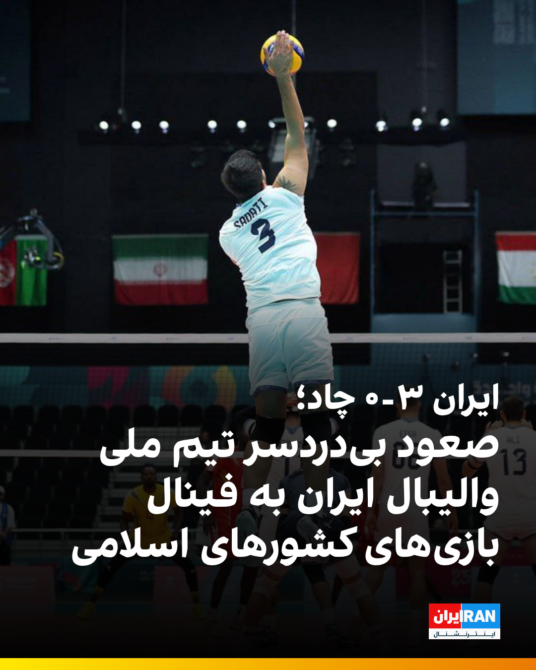 تیم ملی والیبال ایران در ادامه بازیهای کشورهای اسلامی ۲۰۲۵ ریاض امروز با نتیچه ۳-۰ تیم ملی والیبال چاد را شکست داد و به فینال این رقابتها صعود کرد. تیم ملی ایران در این بازی با نتایج ۲۵ بر ۱۵، ۲۵ بر ۱۹ و ۲۵ بر ۲۰ به پیروزی دست یافت.