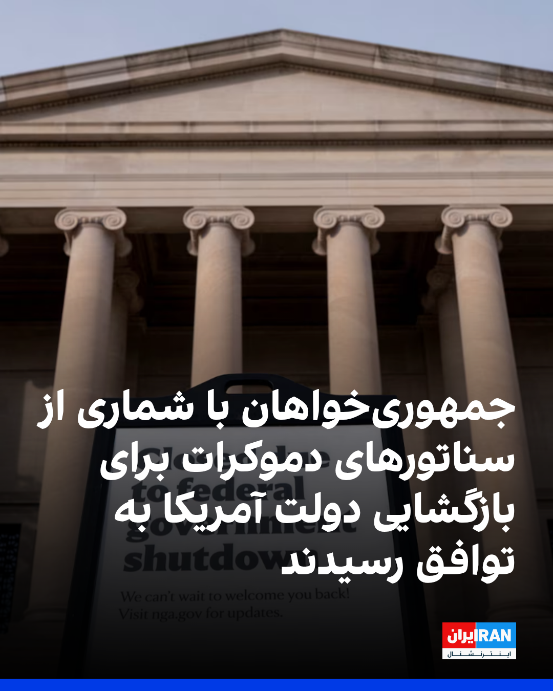 به گزارش رسانههای آمریکایی پس از ۴۰ روز تعطیلی بیسابقه دولت فدرال، جمهوریخواهان و تعداد کافی از سناتورهای دموکرات در سنای آمریکا بر سر چارچوب یک توافق برای بازگشایی دولت به تفاهم رسیدهاند؛ توافقی که در صورت تصویب نهایی در کنگره به این بنبست مالی موجود پایان خواهد داد.