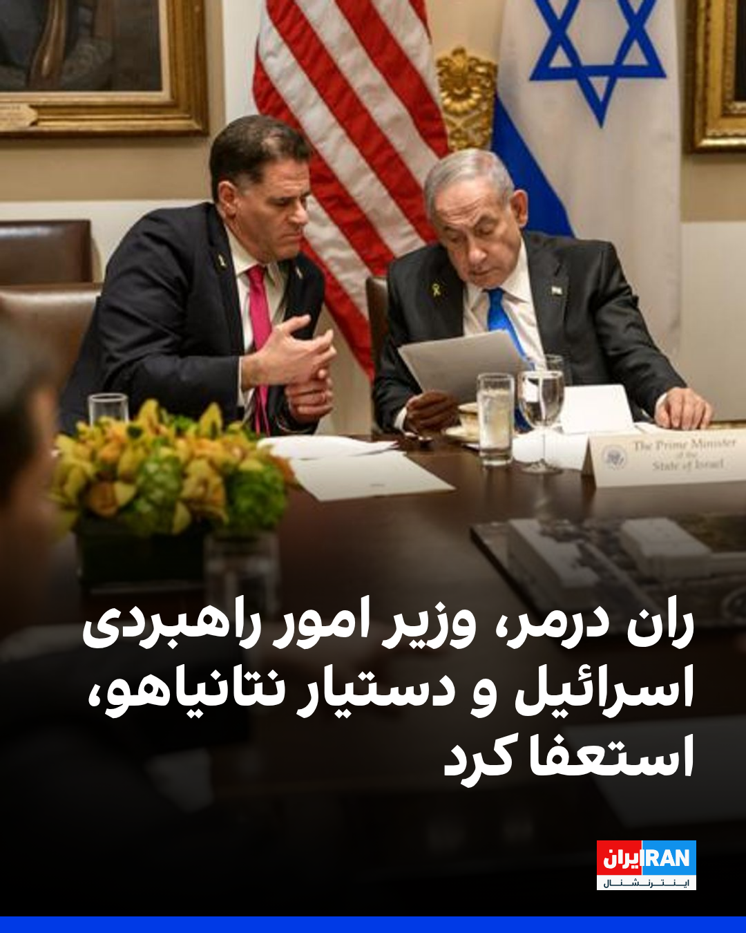 ران درمر، وزیر امور راهبردی اسرائیل، در نامهای به بنیامین نتانیاهو از سمت خود استعفا داد. او از نزدیکترین چهرهها به نتانیاهو و از افراد مورد اعتماد او در ماموریتهای ویژه، بهویژه در روابط با کاخ سفید، به شمار میرفت.