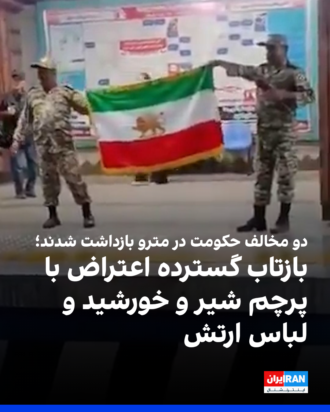 برخی رسانههای وابسته به حکومت از بازداشت دو فرد معترض که در متروی تهران پرچم شیر و خورشید برافراشته بودند، خبر دادند.