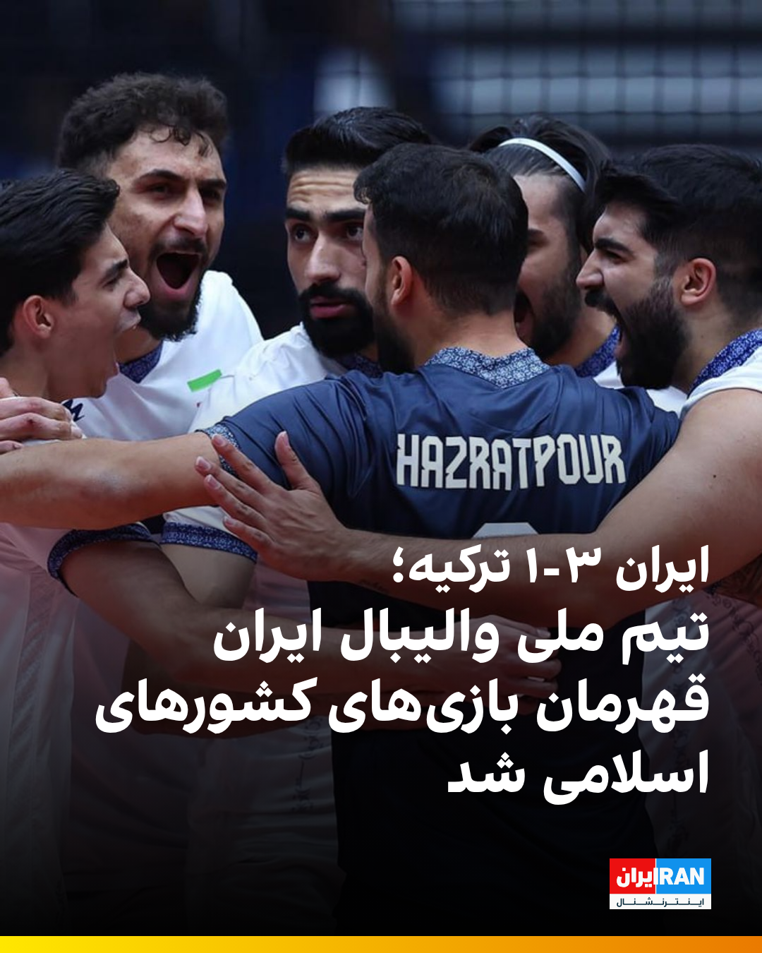 تیم ملی والیبال ایران در دیدار نهایی بازیهای کشورهای اسلامی با نتیجه سه بر یک برابر ترکیه پیروز و قهرمان این رقابتها شد. شاگردان پیمان اکبری ستهای این مسابقه را با امتیازهای ۲۵ بر ۲۰، ۲۵ بر ۲۰، ۱۷ بر ۲۵ و ۲۵ بر ۱۷ به سود خود به پایان بردند.