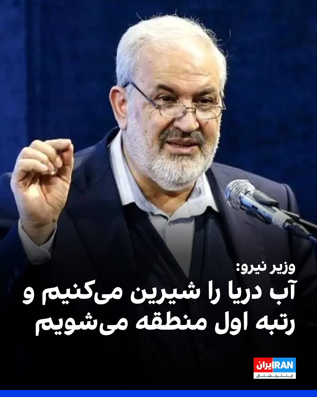 عباس علیآبادی، وزیر نیرو، گفت: «بیش از ٢ میلیارد مترمکعب ظرفیت شیرینسازی آب دریا در دستور کار قرار دارد و این طرح، کشور را به جایگاه نخست منطقه خواهد رساند. دولت تاکید دارد که هر طور بتواند، این پروژه را به سرانجام برساند.»