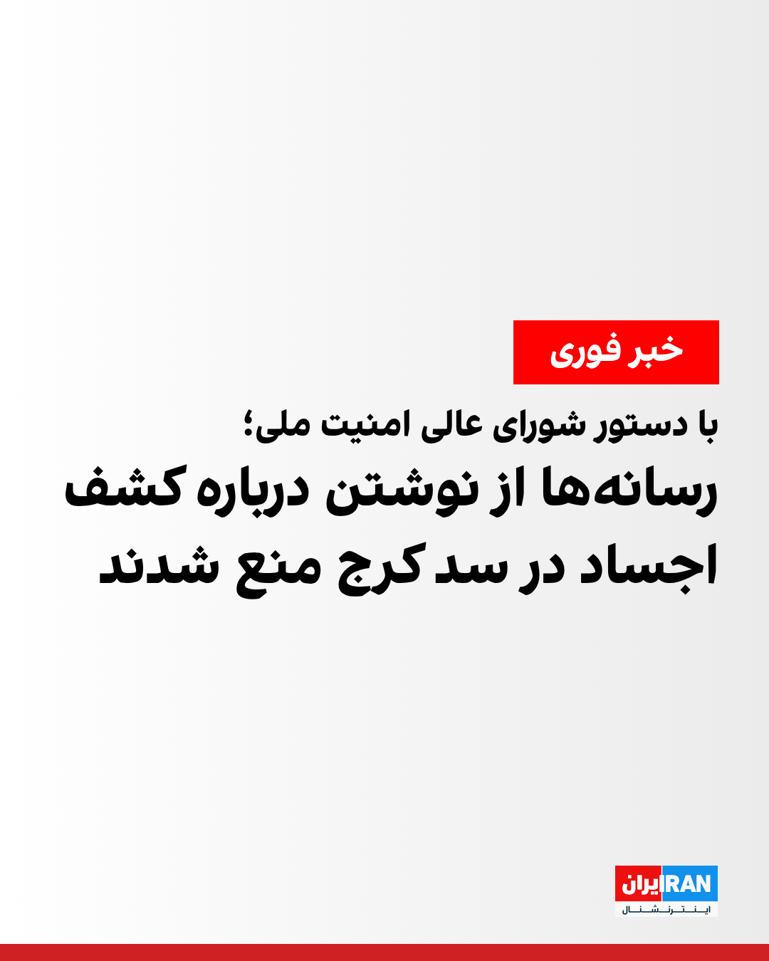 بنا بر اطلاعات رسیده به ایران اینترنشنال، دبیرخانه شورای عالی امنیت ملی جمهوری اسلامی در تماس با رسانههای تصویری، نوشتاری و آنلاین در ایران دستور داده است که از انتشار هر شکلی از محتوا درباره موضوع کشف دهها جسد در بستر خشکشده سد کرج خودداری کنند.