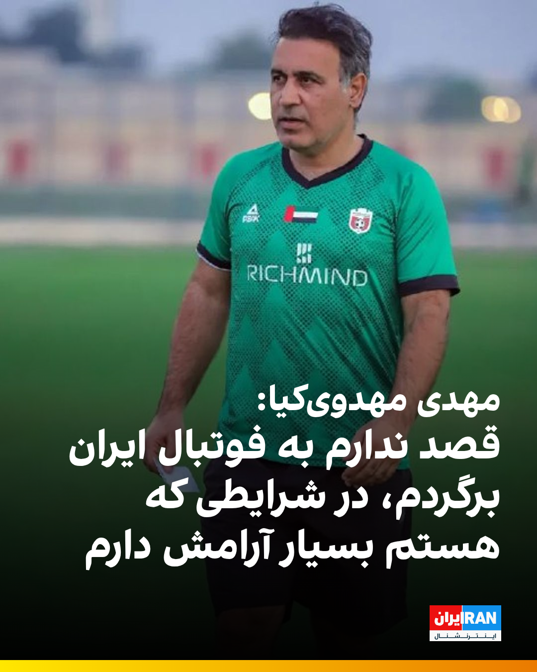 مهدی مهدویکیا، بازیکن پیشین تیم ملی فوتبال در گفتگویی با برنامه اینترنتی رادار درباره بازگشت به فوتبال ایران گفت: «اصلا قصدی برای بازگشت ندارم و دنبال آرامش هستم. در شرایطی که هستم بسیار آرامش دارم.»